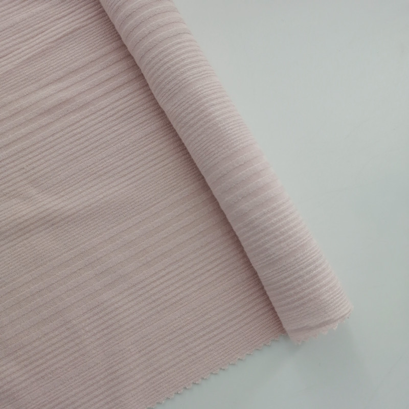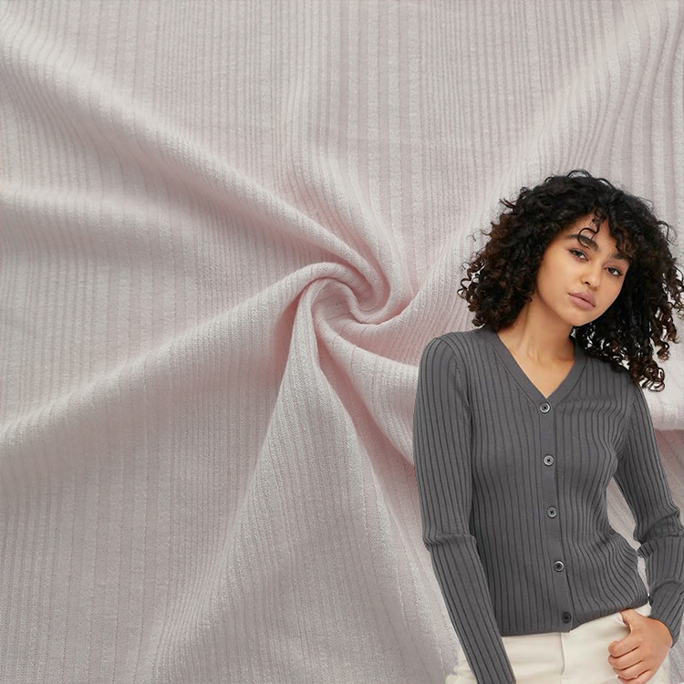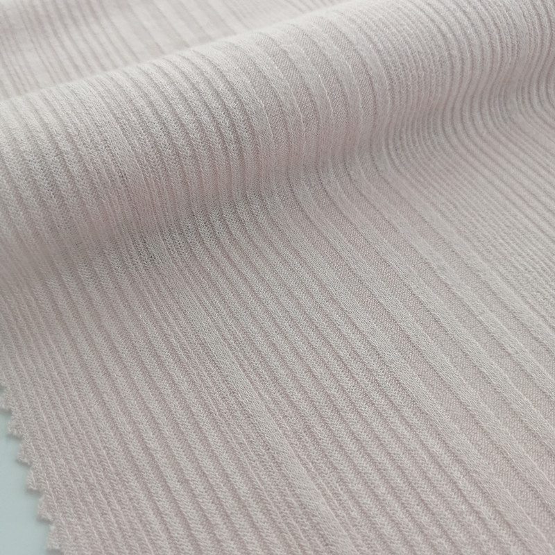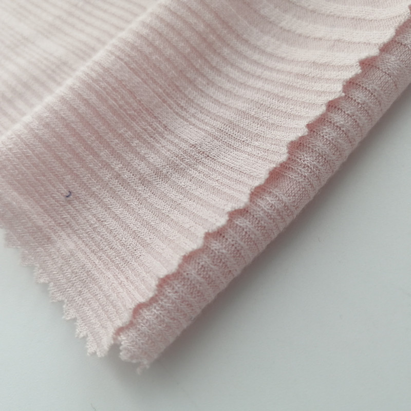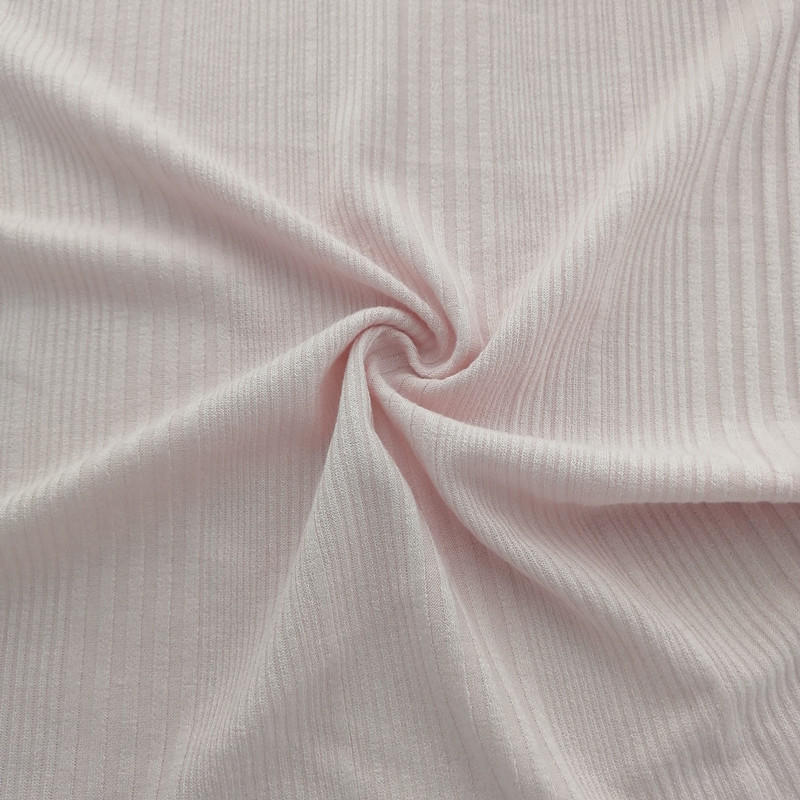 Hot sale Kevyt vaaleanpunainen neulottu polyesteri spandex ribbkangas naisten vaatteille